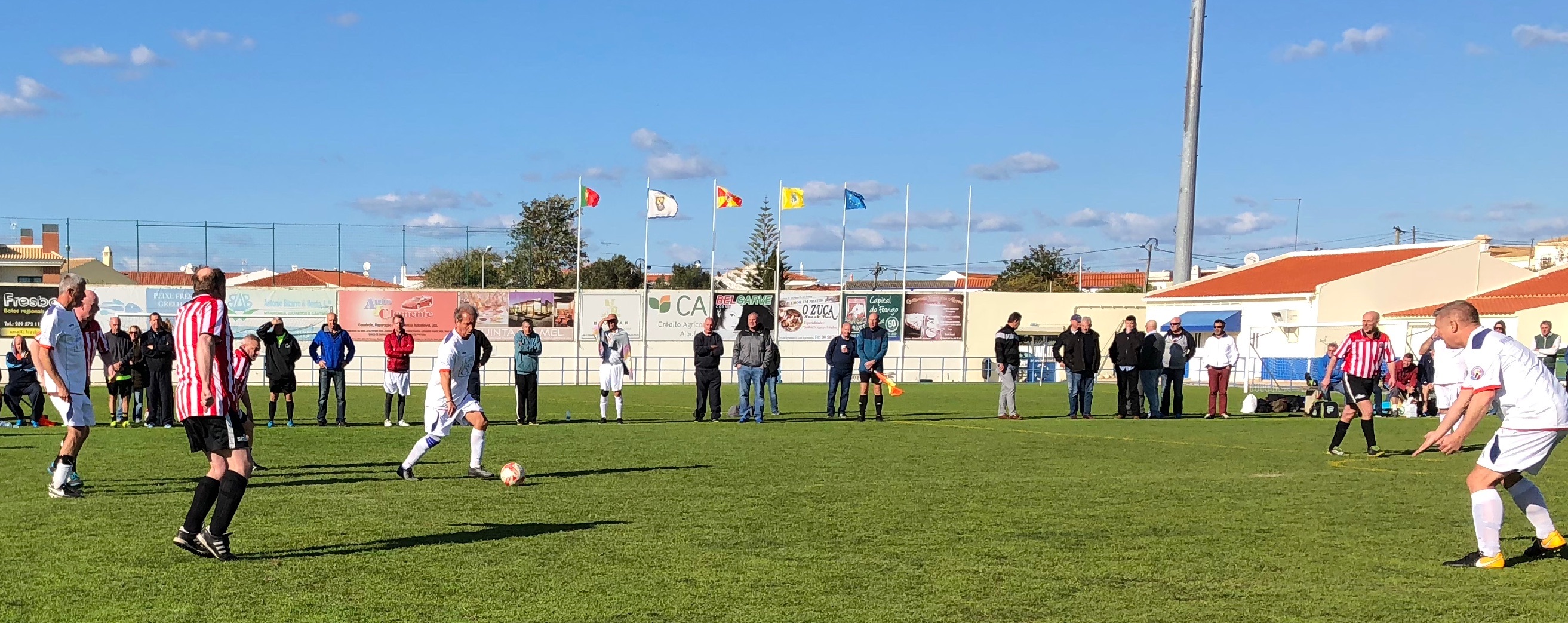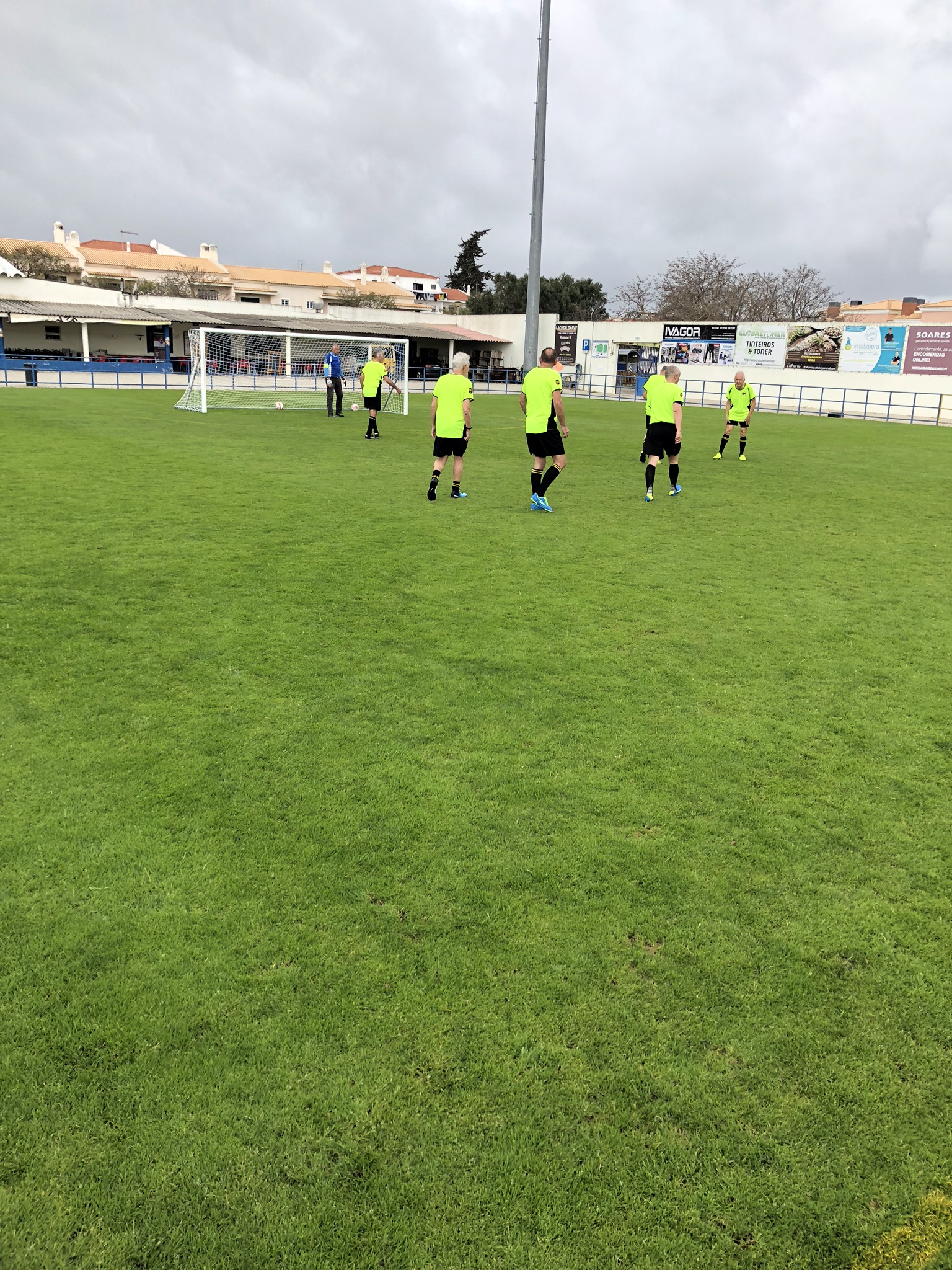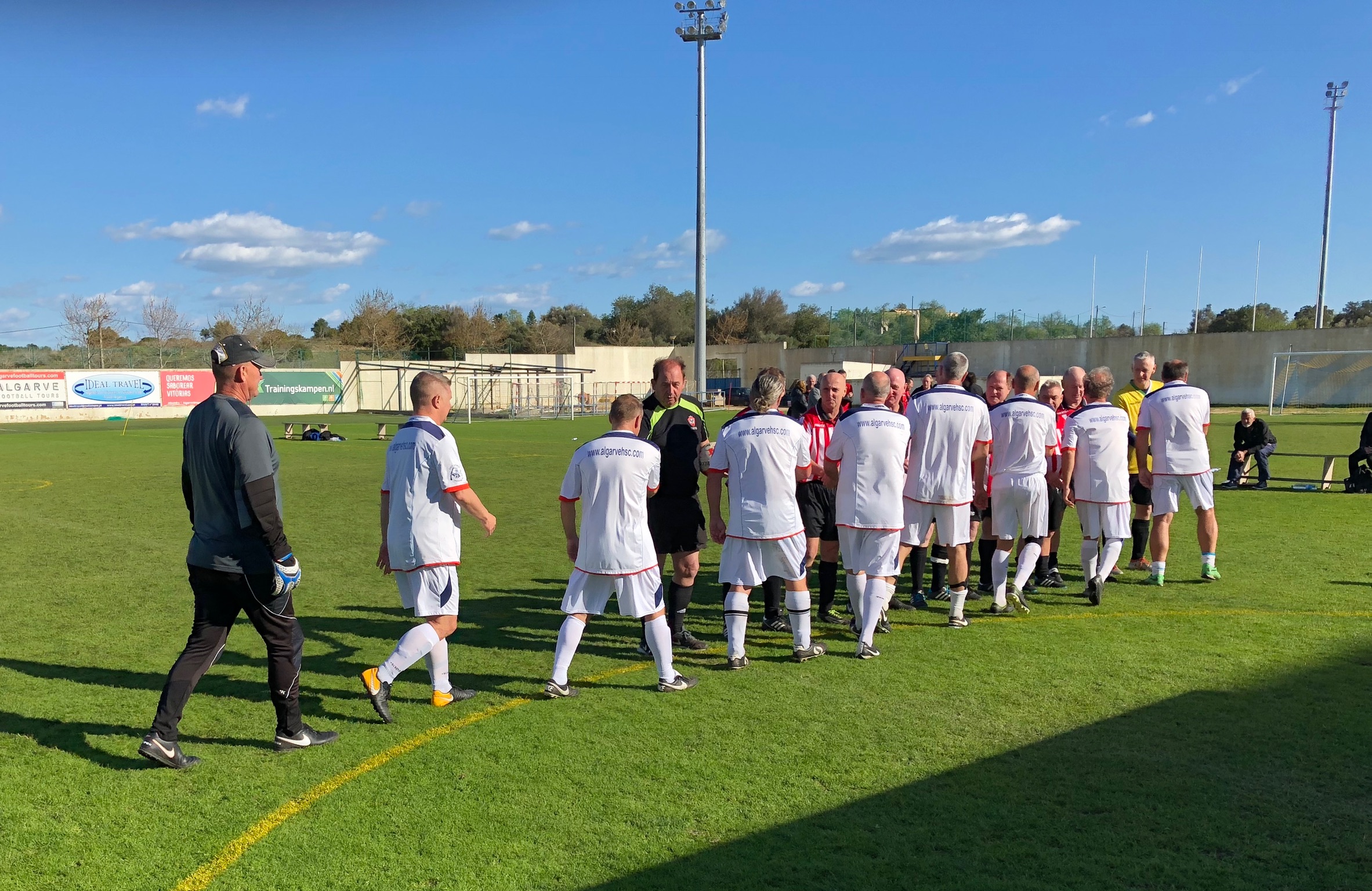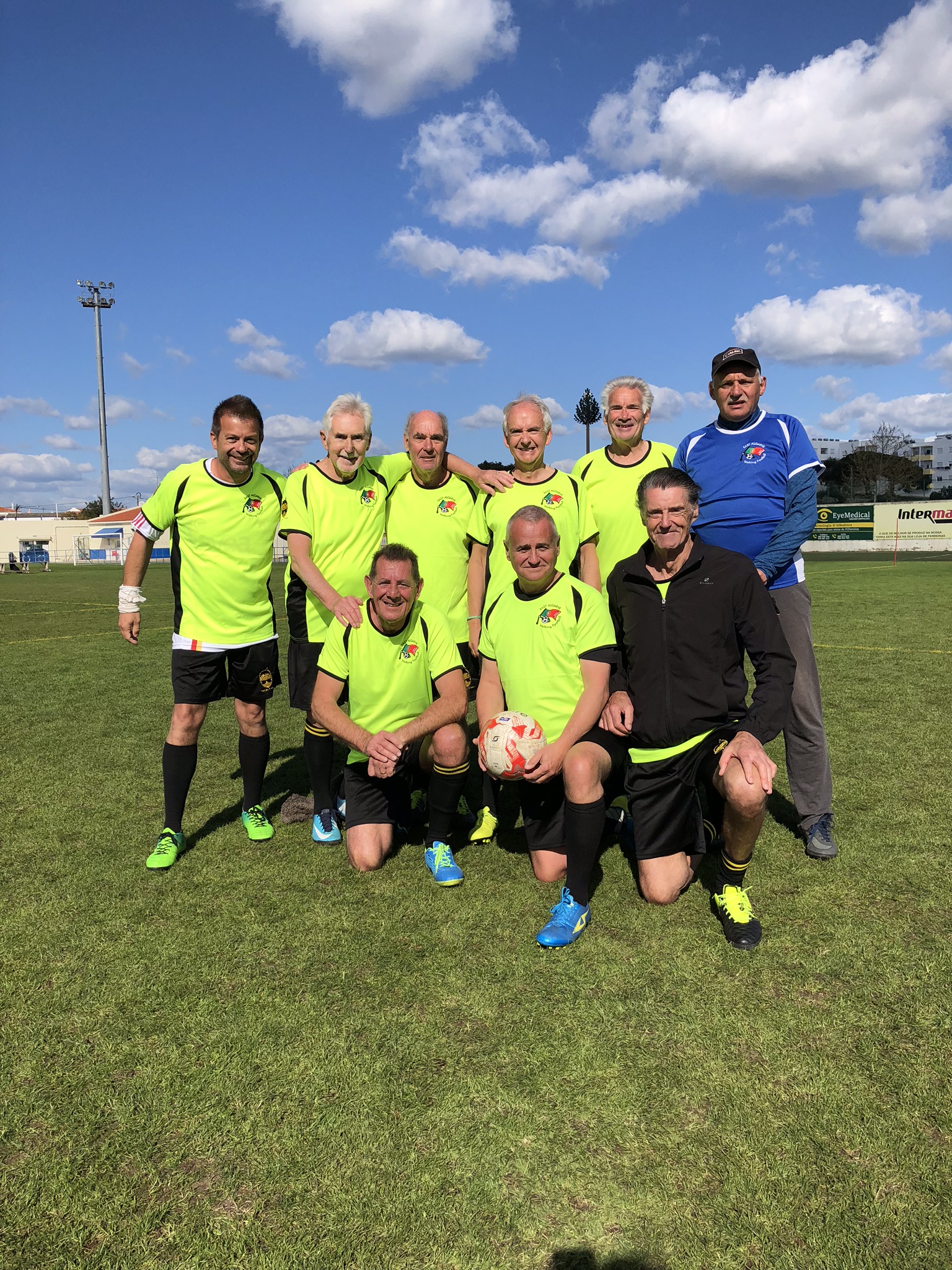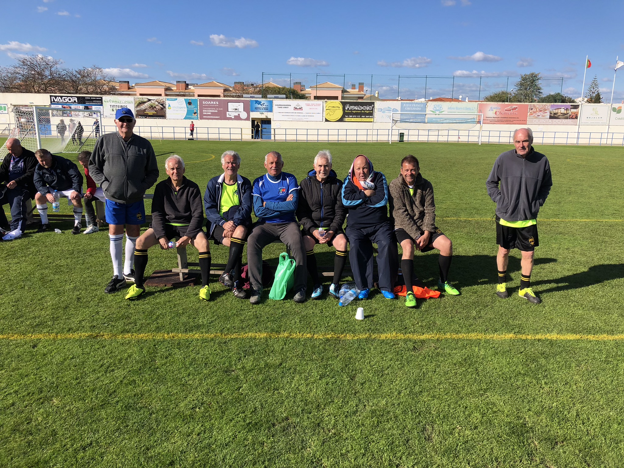 We all descended on a cold, wet, and blustery Estadio Nora in Ferreiras, just north of Albufeira, for two days of walking football and camaraderie brilliantly organised by Gary at Algarve Football Tours.