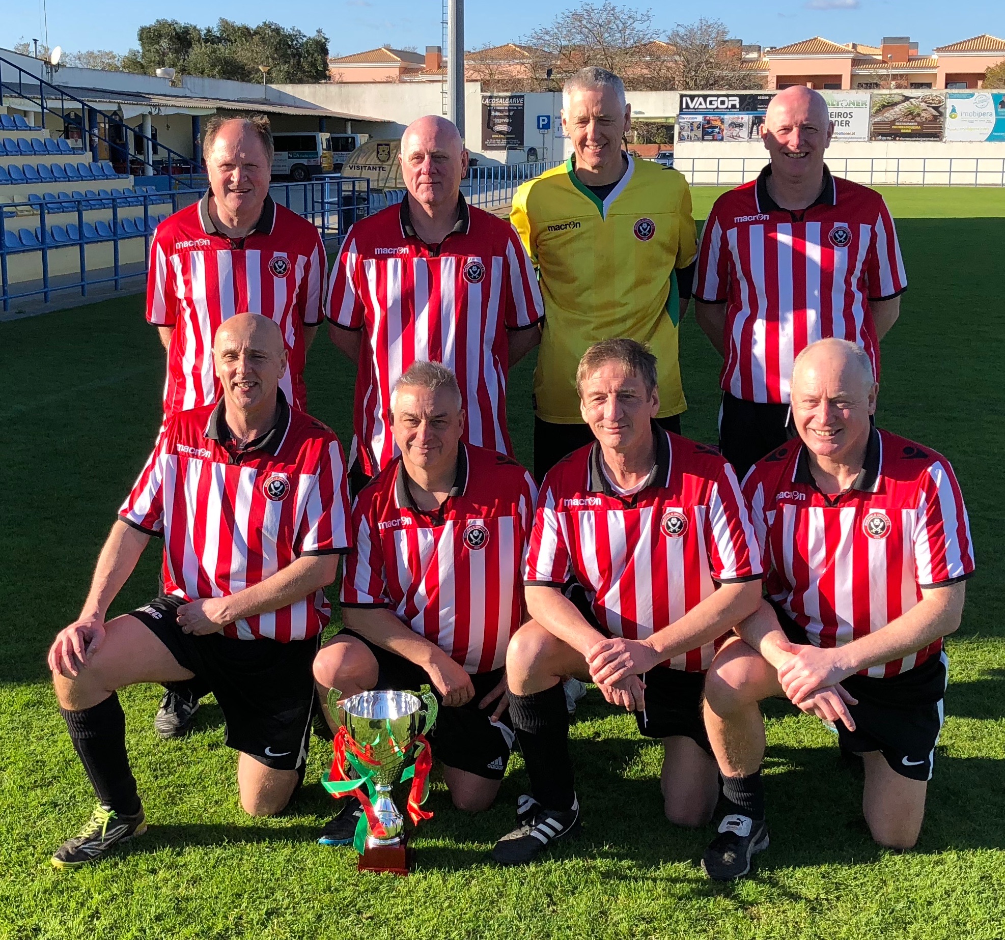 So, a first tournament loss for Olhao A after 7 straight victories. It must be said that Sheffield United were the team of the tournament and fully deserved their victory, but Olhao will hopefully bounce back at Vilamoura in May. They did manage to score 39 goals in 9 matches, winning 7 games, drawing one, and only losing in the final to the current EPL Champions, so all is not doom and gloom. Special mentions must go to Derby Dave and Karl Chapman who made their A team debuts as well as Paul Shawe who stepped up in goal to cover the injury to Peter, and Paolo Turni who won the Golden (“Glass”) Boot for top scorer. Goals were scored all over the team, with Karl and yours truly getting quite a few from midfield, plus the usual contributions from Andy Smith and player/manager Jon Syed up front. Nobby Clarke and Mick Coleman provided the usual stout defence.