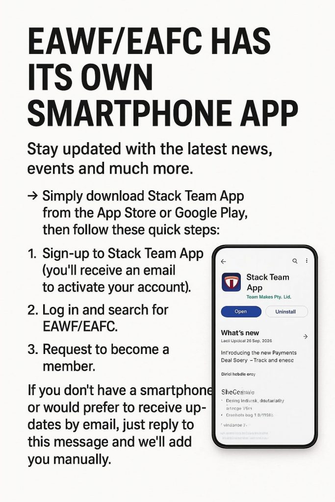 Did you know you can follow our latest news etc. on your smart phone using the EAWF/EAFC app on Stack Team?